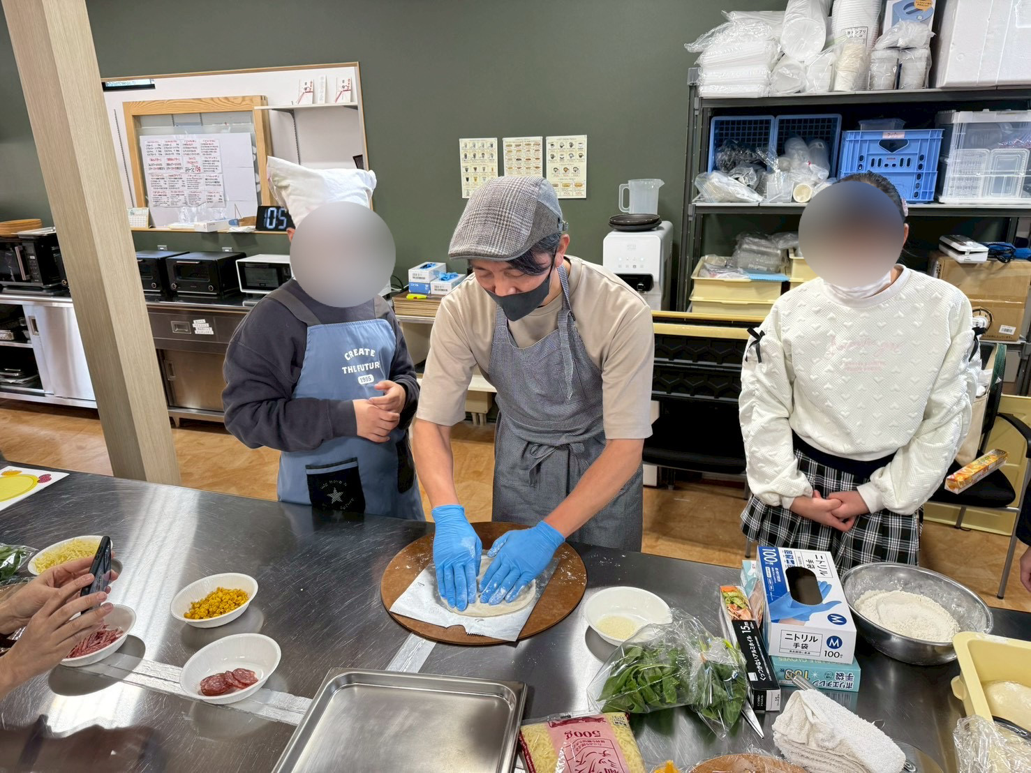 もっちりとしたミナミノカオリのピザ生地に、自分だけの特別なピザを作っていきます。