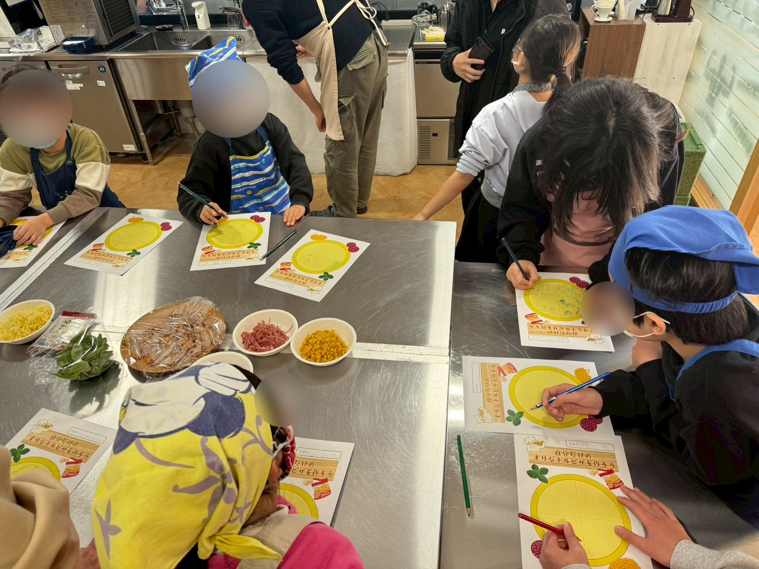 「何をのせようかな」「サラミはたっぷりにしたい!」「大好きなコーンものせたいな」…子どもたちは想像力を膨らませながら楽しそうにデザインしていきます。