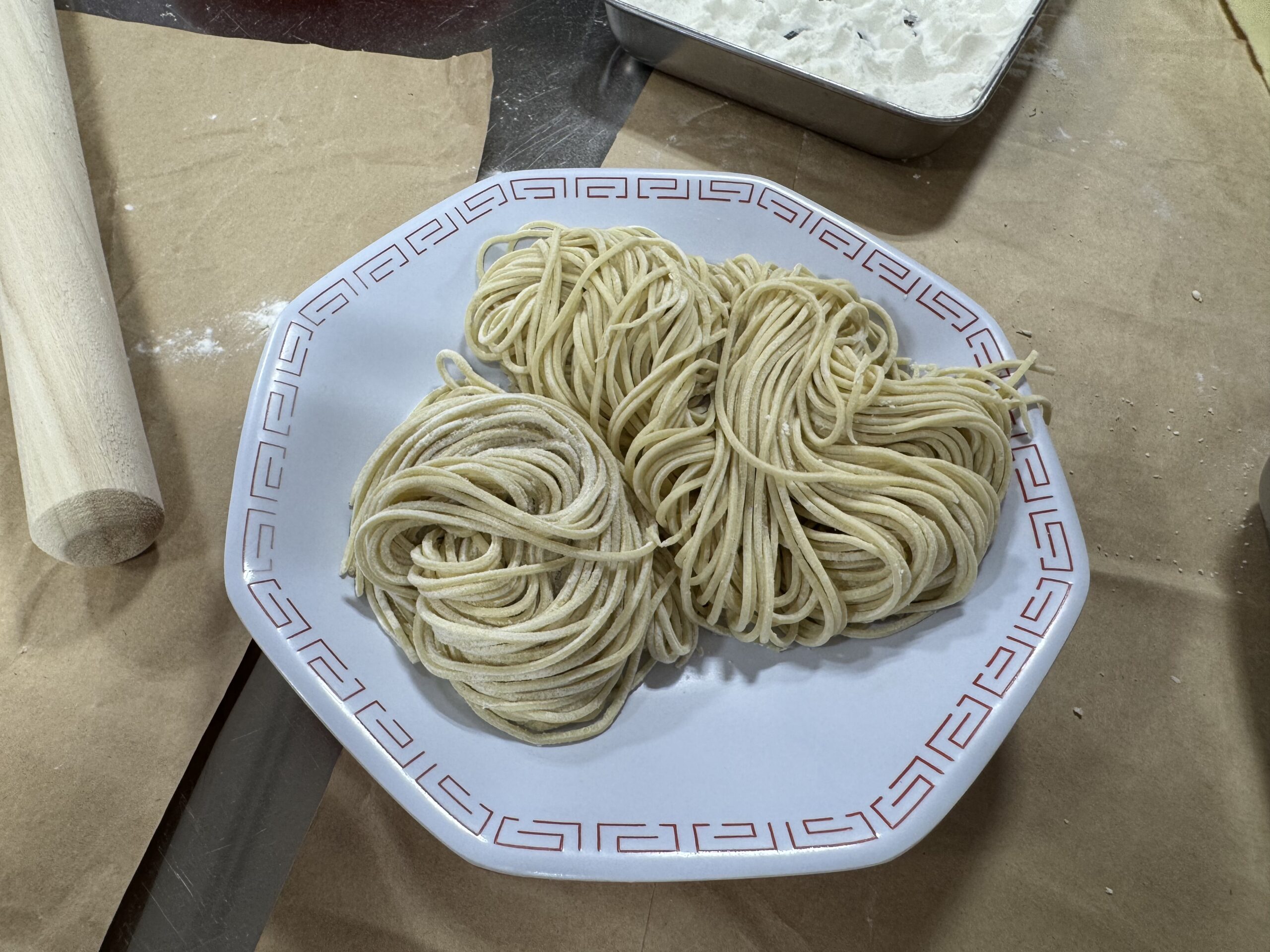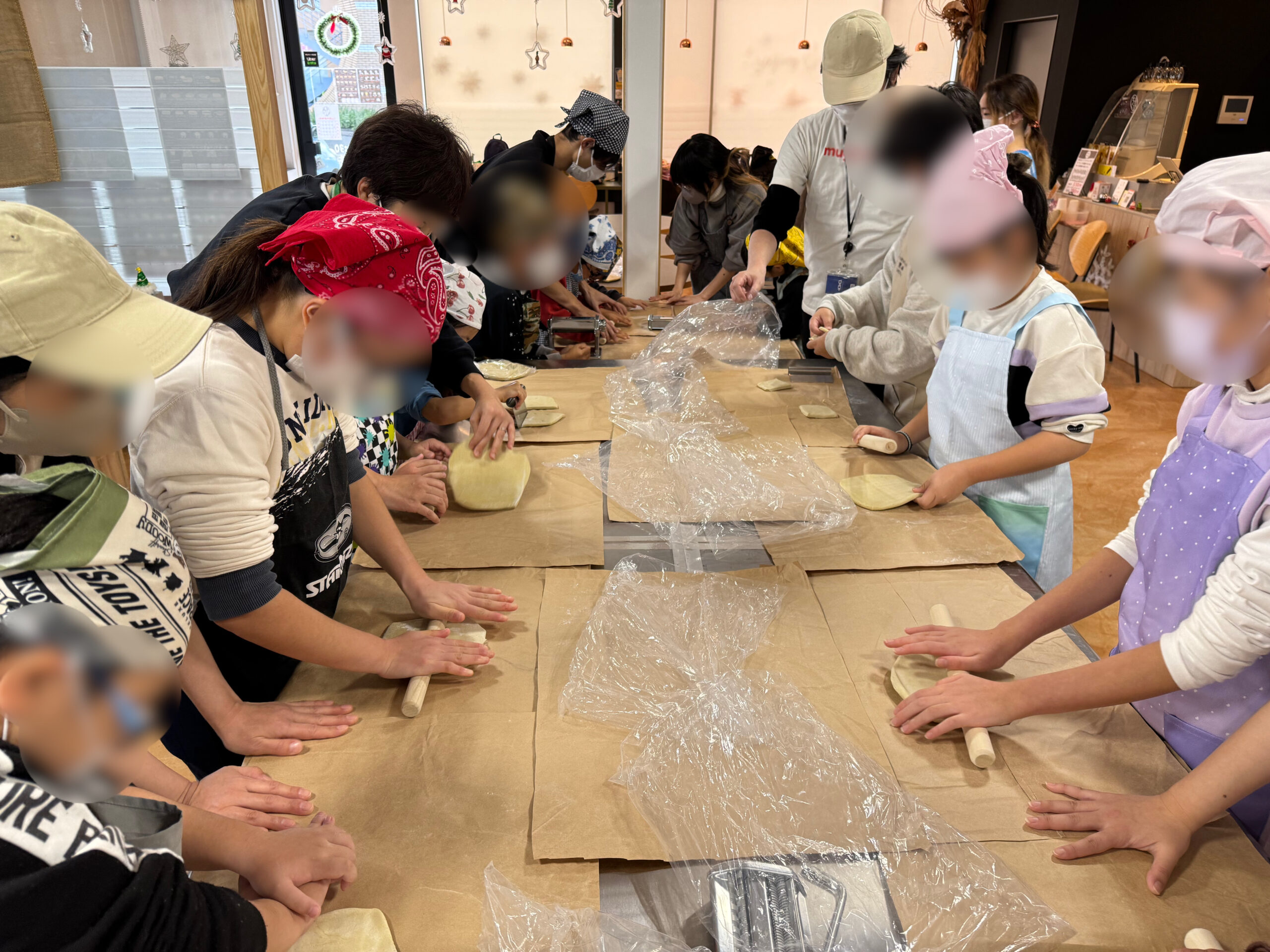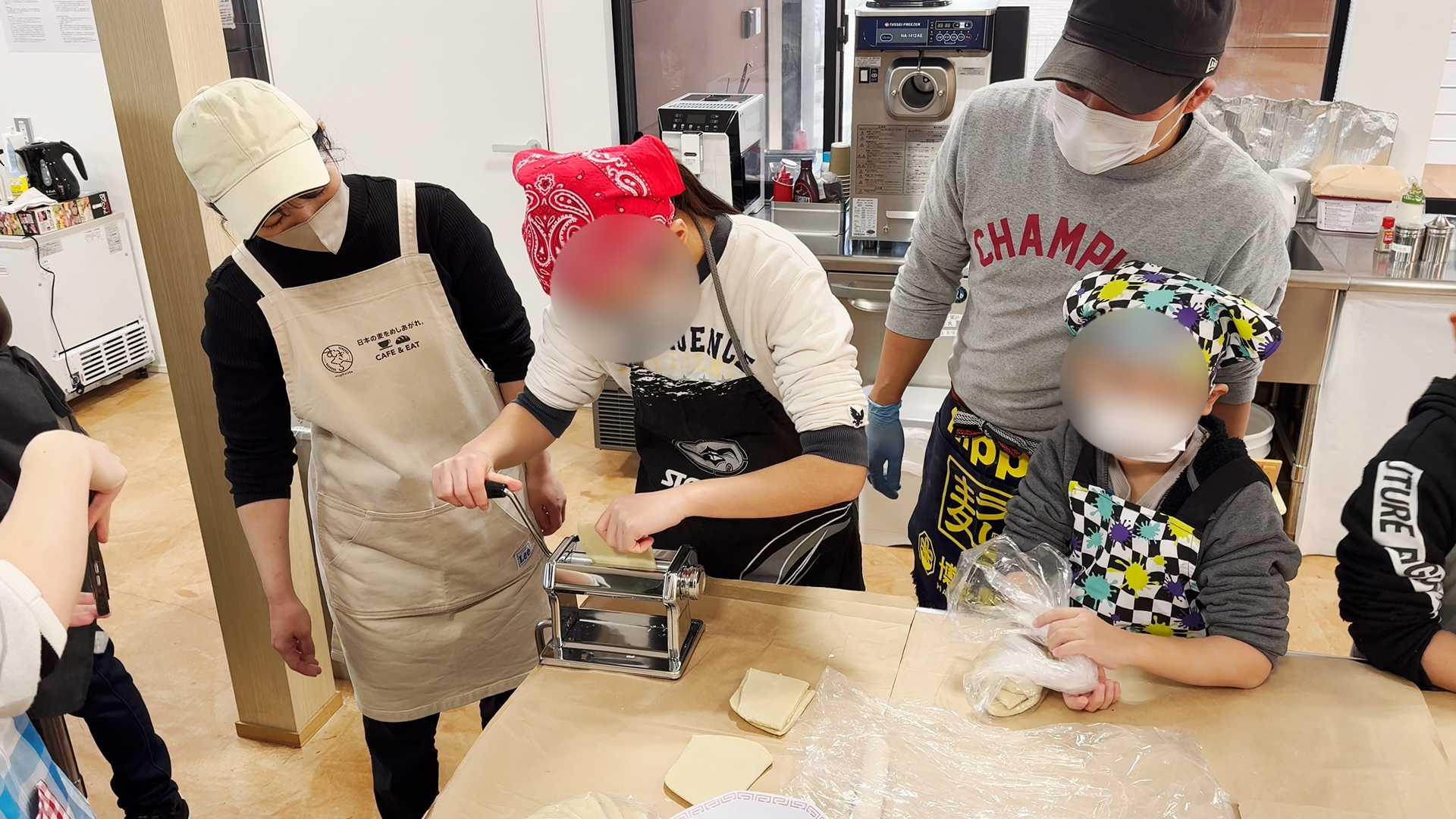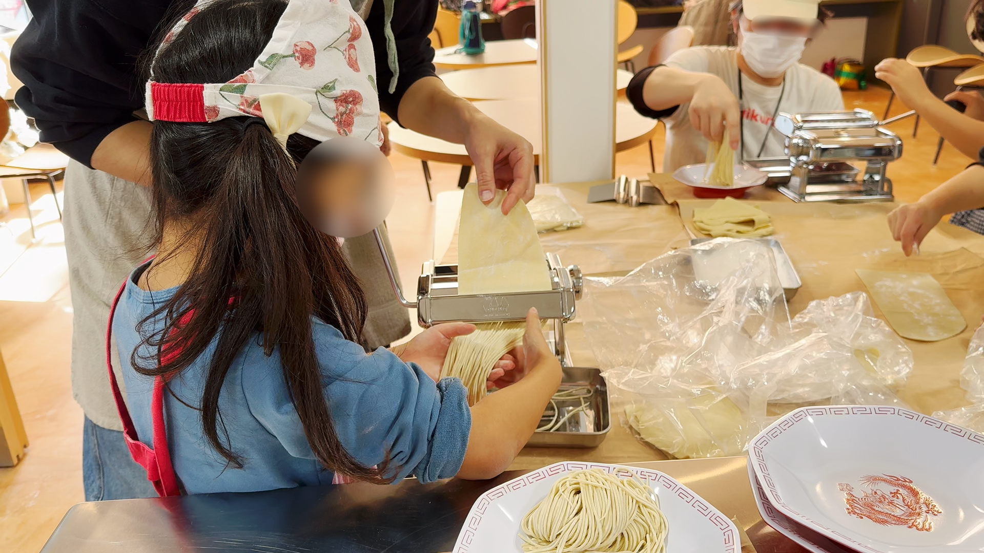 麺棒でのばした後の製麺機を扱う作業は、みなさん夢中で取り組んでいました。