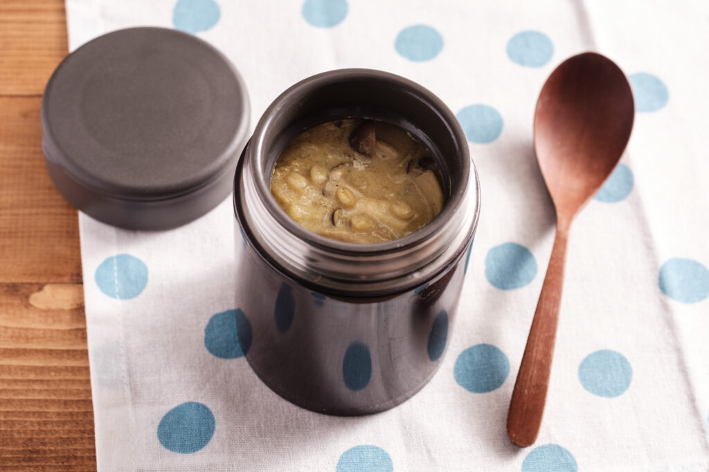 温めておいたスープジャーのお湯を捨て、4を入れてふたをし、2時間以上保温する。
