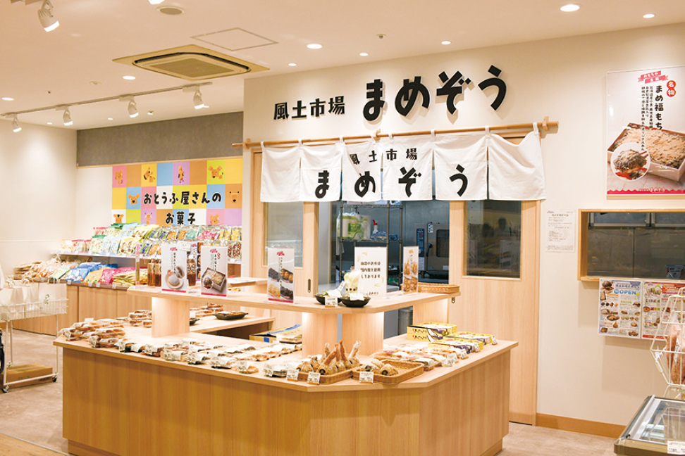 また日本の農業を応援したいという気持ちから、大豆と小麦の利用拡大のために、とうふドーナツも開発し、手応えが得られたので生産ラインも新たに確保しました。健康志向やヘルシーな食品を好む市場を踏まえて、ミルク寒天やパン、プリンなど、幅広い年代の方に国産大豆や小麦を原料とした料理やスイーツを食べてもらうように動きを加速させています。農工商連携をより強化し、企業、メーカーも積極的に大豆の利用拡大に寄与していきたいと考えています。2025(令和7)年7月には、愛知県内にある刈谷ハイウェイオアシスに、地元の農産物で作った商品を販売するコンセプトショップ「風土市場まめぞう」をオープンしました。日本の農産物を応援しながら、今後も安全・安心な食品を提供してまいります。